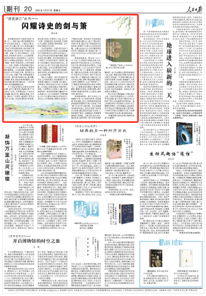 3月21日,人文学院葛永海教授文章《“诗话浙江”丛书——闪耀诗史的剑与箫》在《人民日报》上发表。