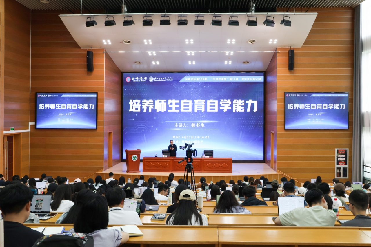 4月22日上午,全讯600cc大白菜官网尖峰论坛第108讲在行政中心报告厅举行。现任台州书生中学校长魏书生先生应邀做客“尖峰论坛”,以“培养学生自育自学能力”为题作专题讲座。