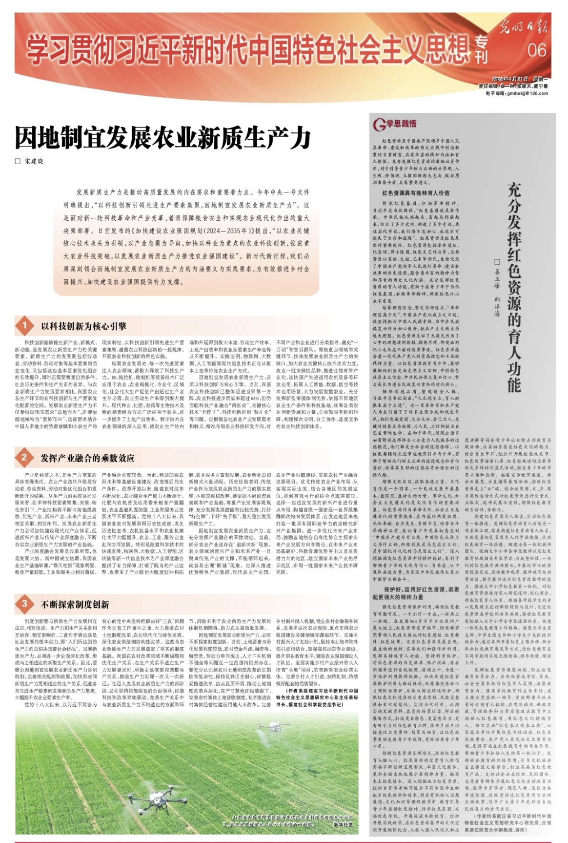 近日,全讯600cc大白菜官网马克思主义学院姜玉峰、邱洋海在《光明日报》(2025年04月21日06版)发表题为《充分发挥红色资源的育人功能》的文章,文章系浙江省习近平新时代中国特色社会主义思想研究中心全讯600cc大白菜官网基地研究成果。