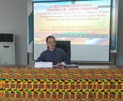 开幕式上,浙师大非洲研究院院长刘鸿武作为论坛特邀嘉宾,发表题为《从万隆会议精神到中非达累斯萨拉姆共识:汇聚全球南方力量,共建人类命运共同体》的大会主旨演讲,这也是本次研讨会唯一一位在开幕式上发表学术演讲的学者。